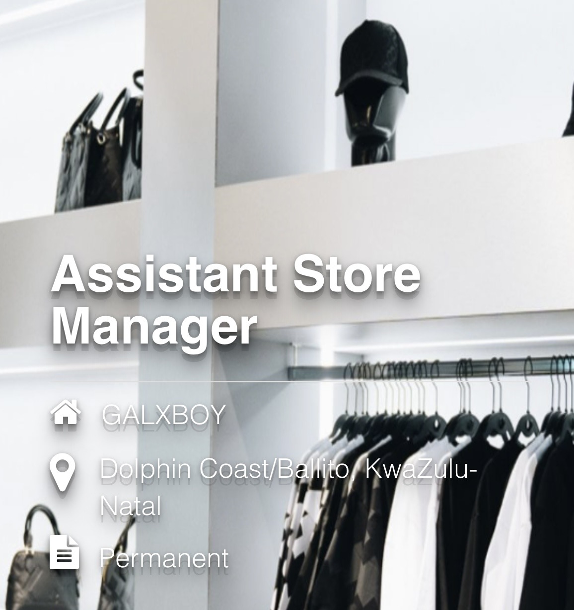 GALXBOY Dolphin Coast, KwaZulu-Natal Job details Job type Location Dolphin Coast, KwaZulu-Natal Full job description GALXBOY is a proudly South African streetwear brand that emerged […]